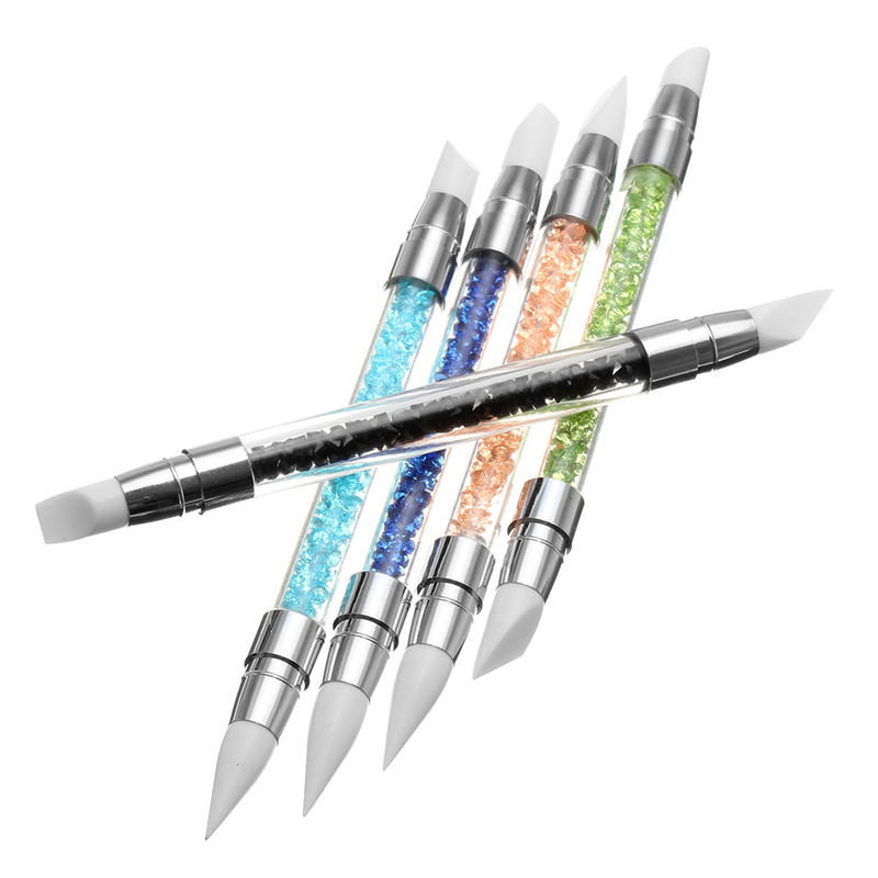 1шт двойной головкой силиконовые зеркало порошок перо ногтей живописи глины лепить рисунок гель для ногтей маникюр инструмент