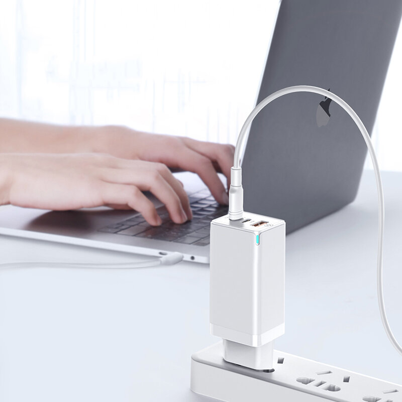 • Baseus GaN 65 Вт QC4.0 PD3.0 Тройной выход 2 * Type-C 1 * Мини-зарядное устройство USB * Универсальное зарядное устройство ЕС США Plug для Samsung S10 Matebook для iPhone 11 Pro