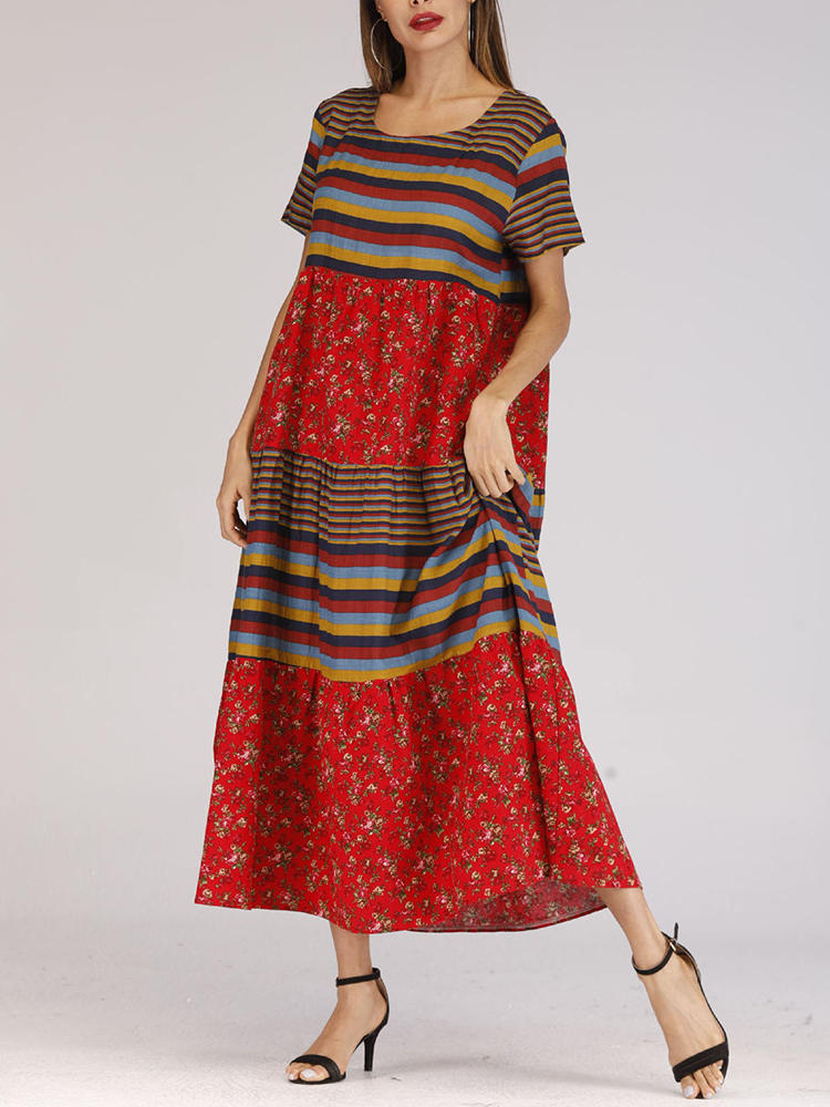 Этнический стиль O-образным вырезом с коротким рукавом Женское длинный Платье