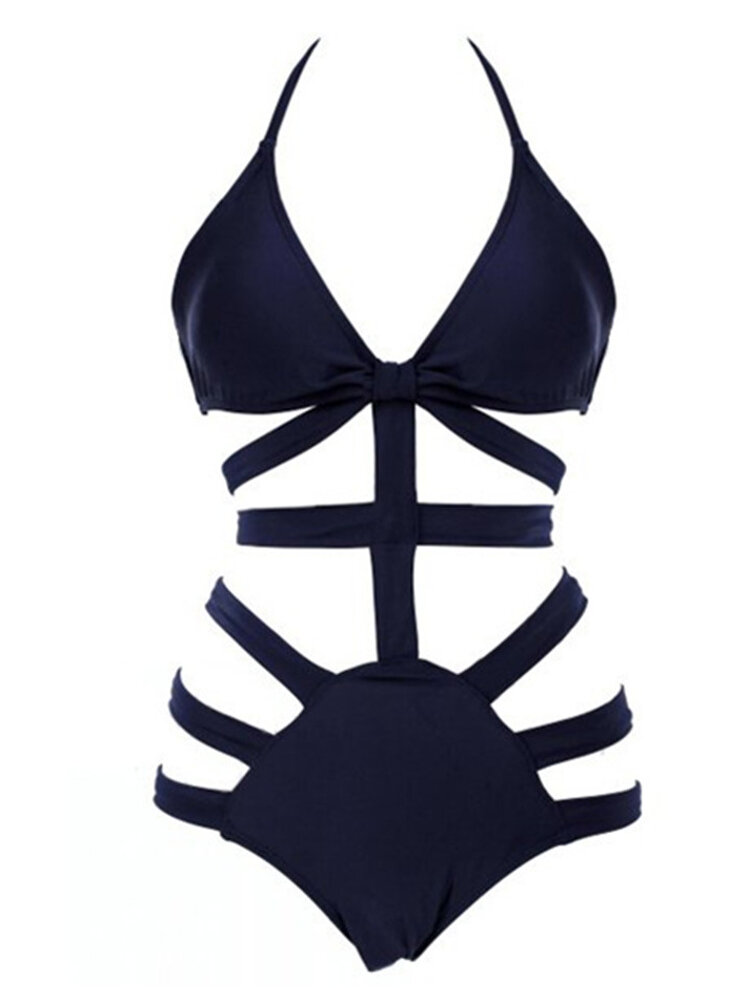Сексуальный Halterneck Black Blue Cut Out Bandage One Piece Monokini Купальный костюм