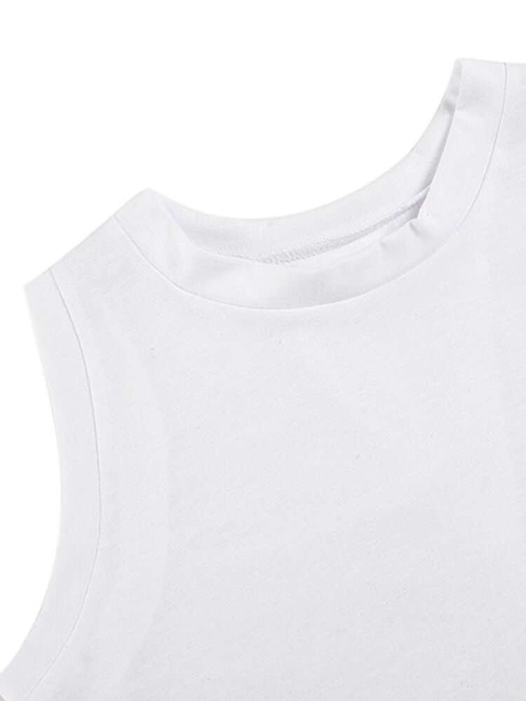 Сексуальные женщины без рукавов белый твердый задний раскол хлопка жилет майка