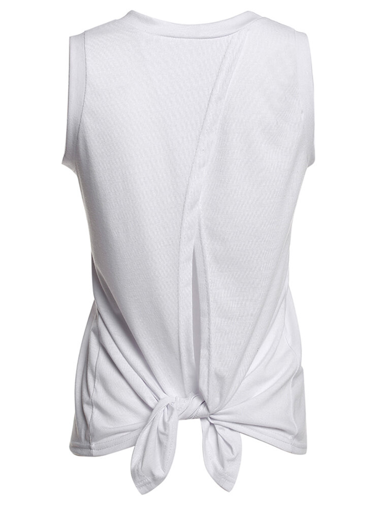 • Сексуальные женщины без рукавов белый твердый задний раскол хлопка жилет майка
