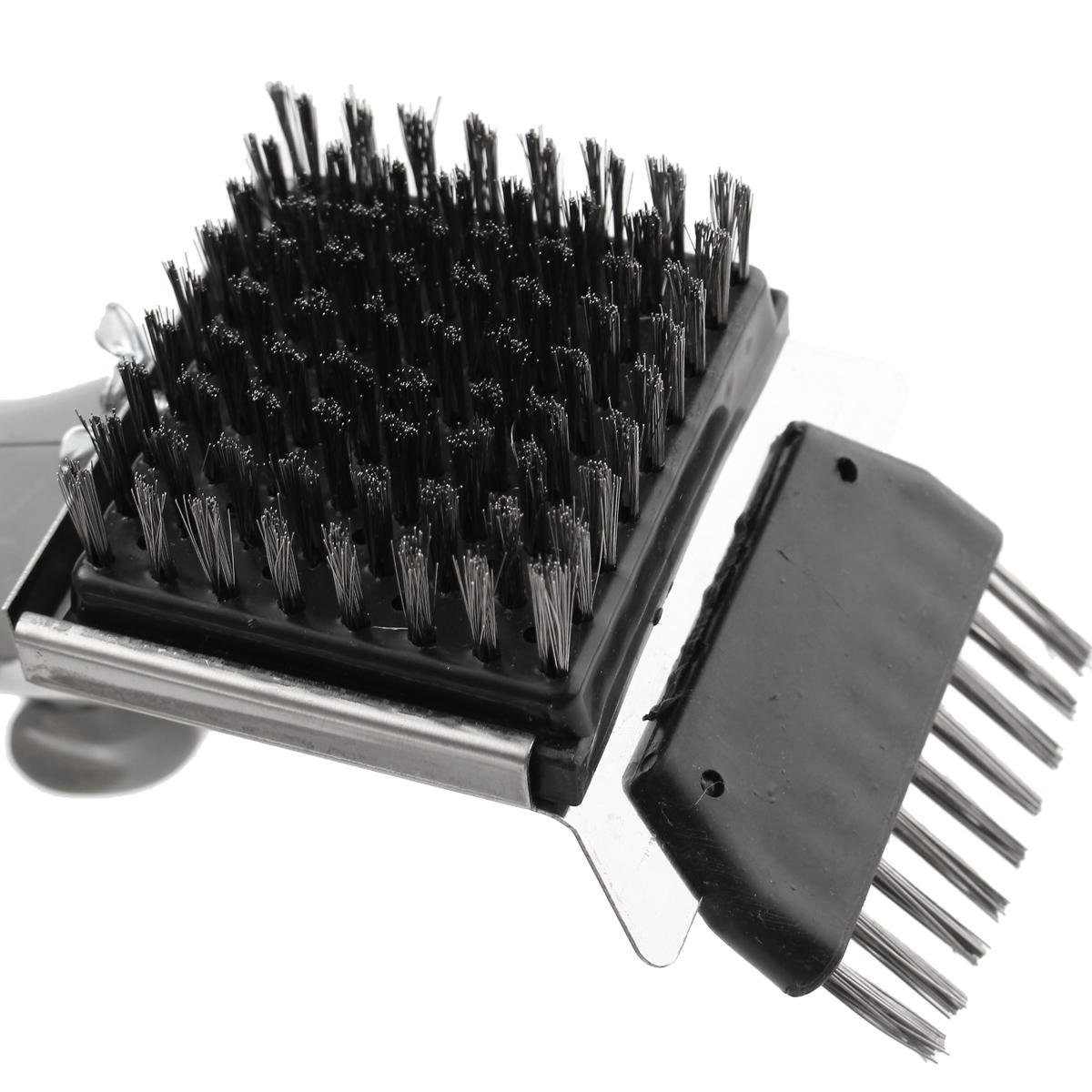 - Специально разработанные щетинки из нержавеющей стали очищают между решетками гриля и поверхностями.