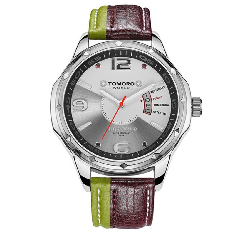 TOMORO Brand TMR0214 Календарь Двойные цвета Кожаные мужские кварцевые повседневные стильные мужские наручные часы COD