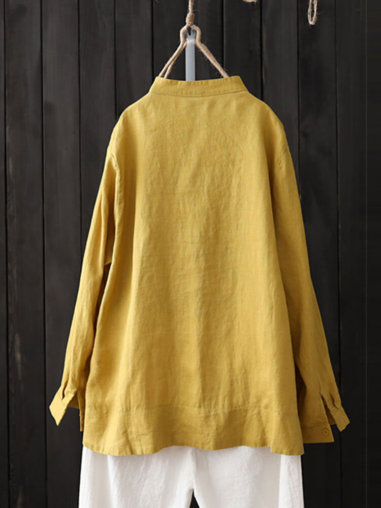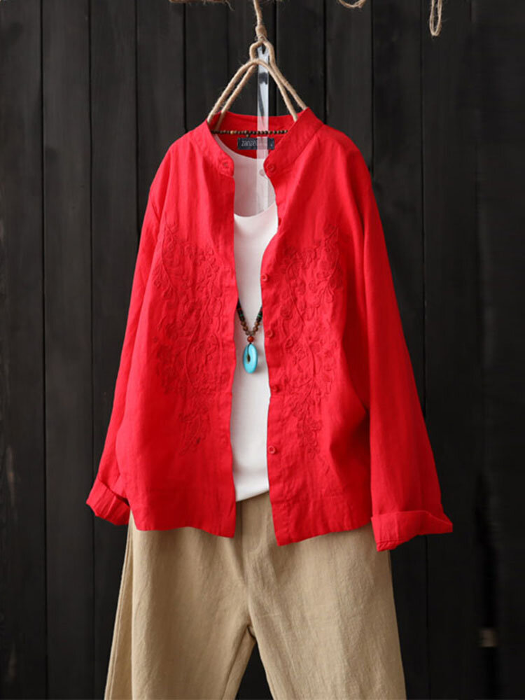 • Винтаж Женское Повседневная вышитая пуговица с длинным рукавом