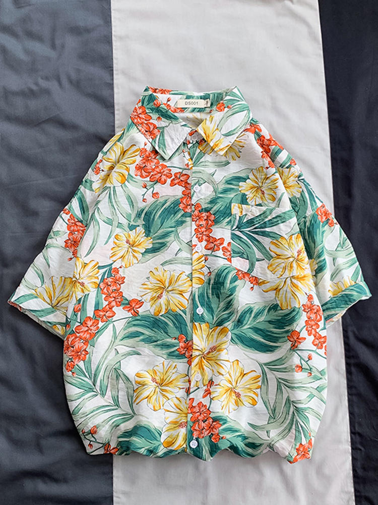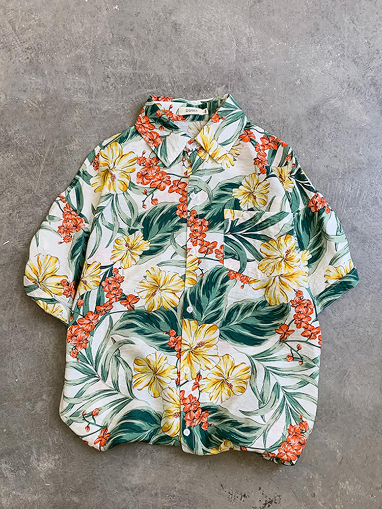 • Женская повседневная пуговица с цветочным принтом Пляжный Holiday Summer Blouse