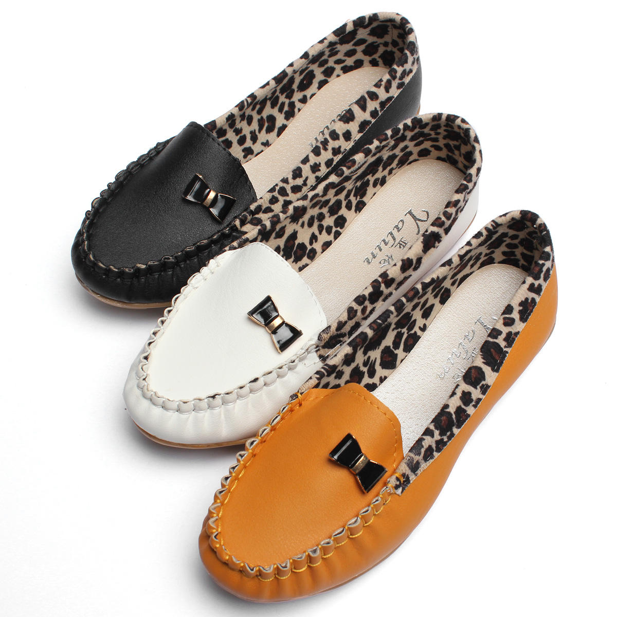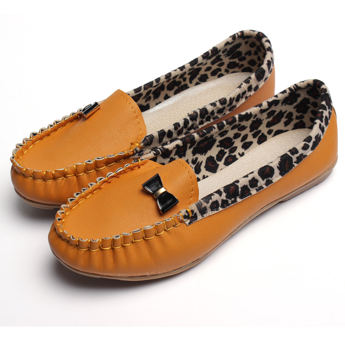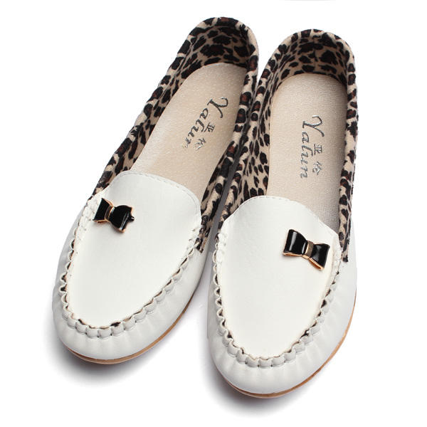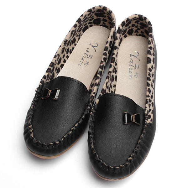 • Женская мода леопардовая повседневная бездельник тапочка Soft кожаная одиночная обувь