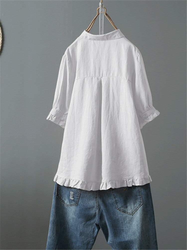 • Женское Винтаж Рубашка с длинным рукавом и воротником сплошного цвета